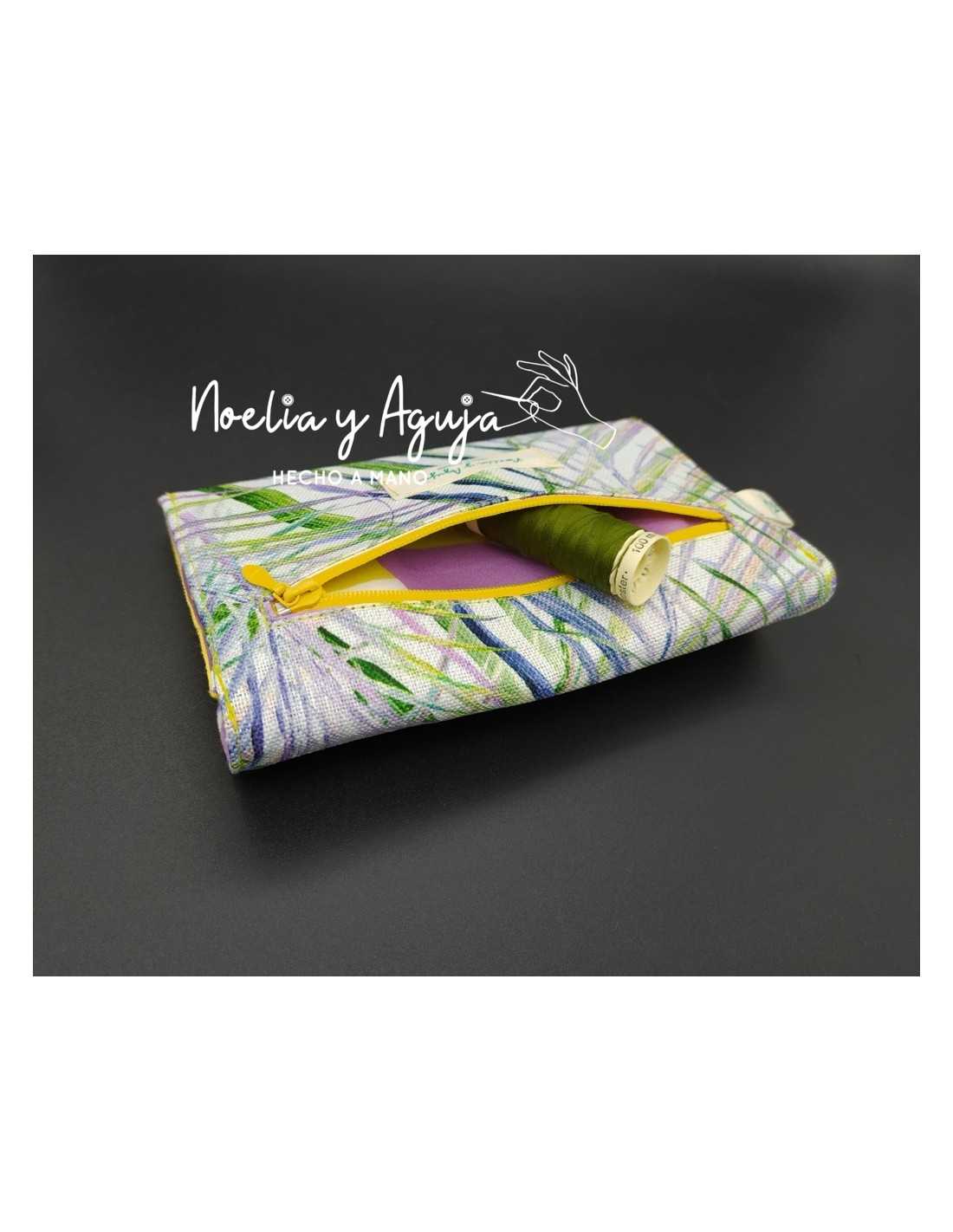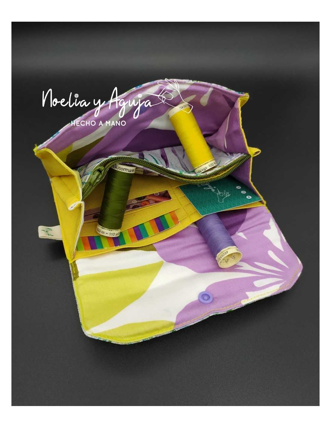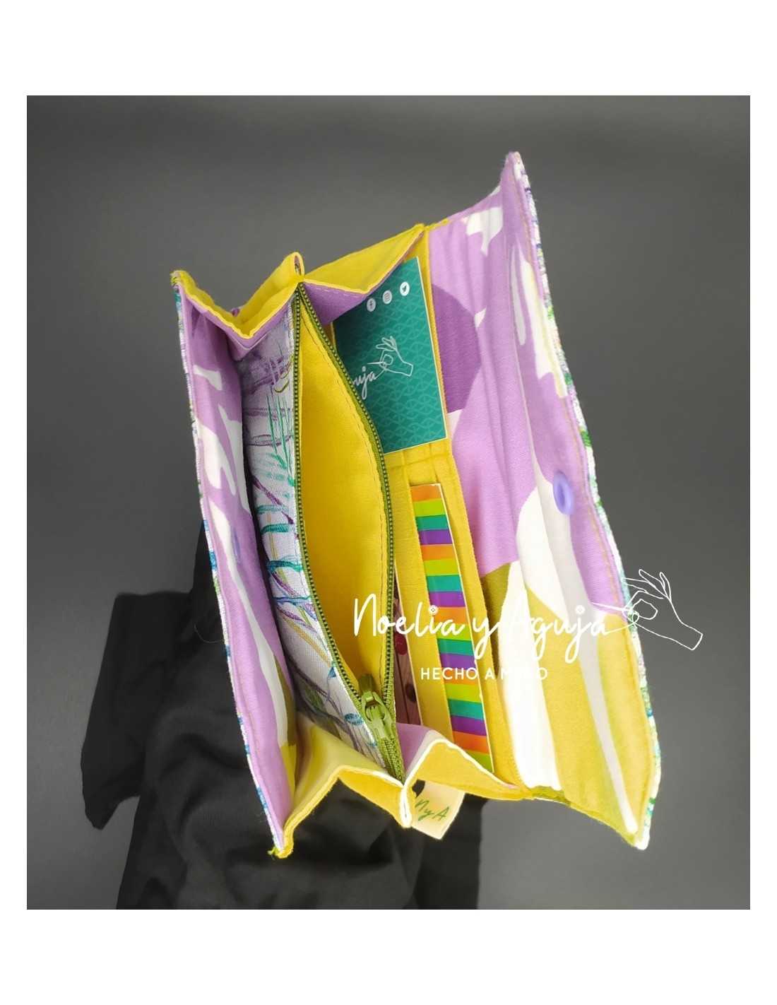 Monedero con fuelle, bolsillo interior con cremallera y bolsillo exterior con cremallera, distintos departamentos.