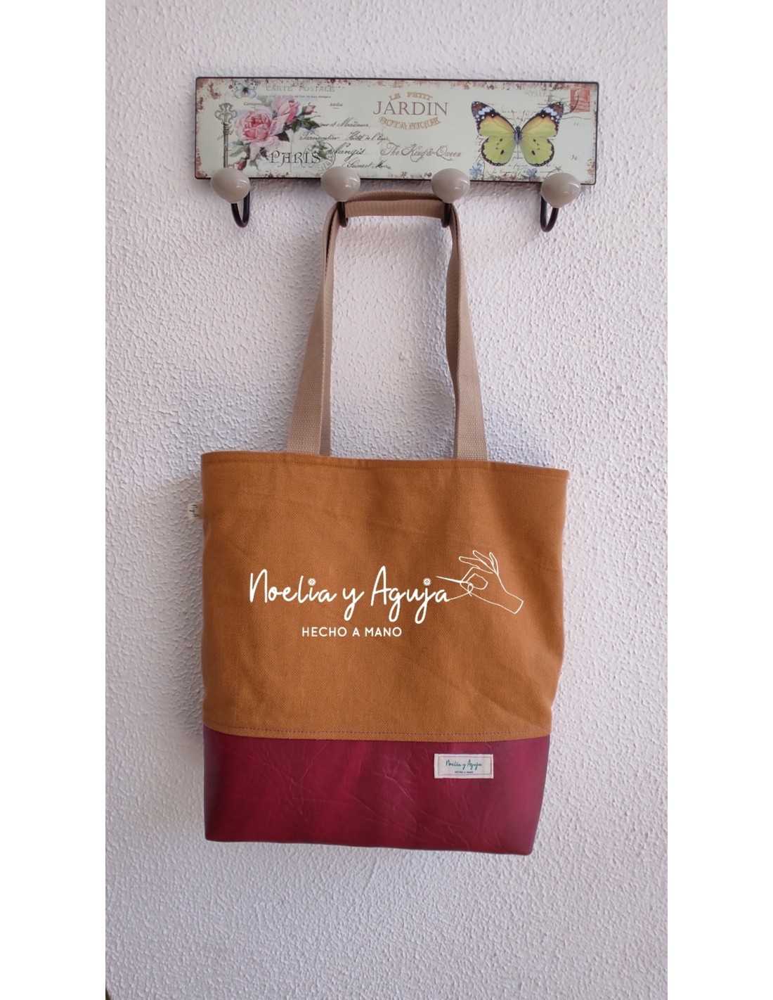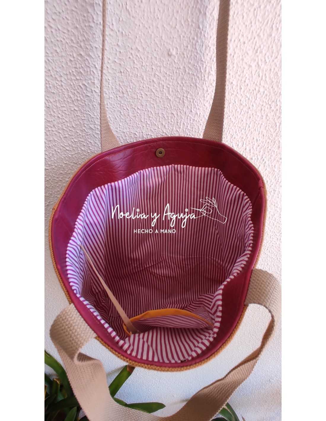 Bolso de doble asa con base de polipiel, interior forrado y con bolsillo.