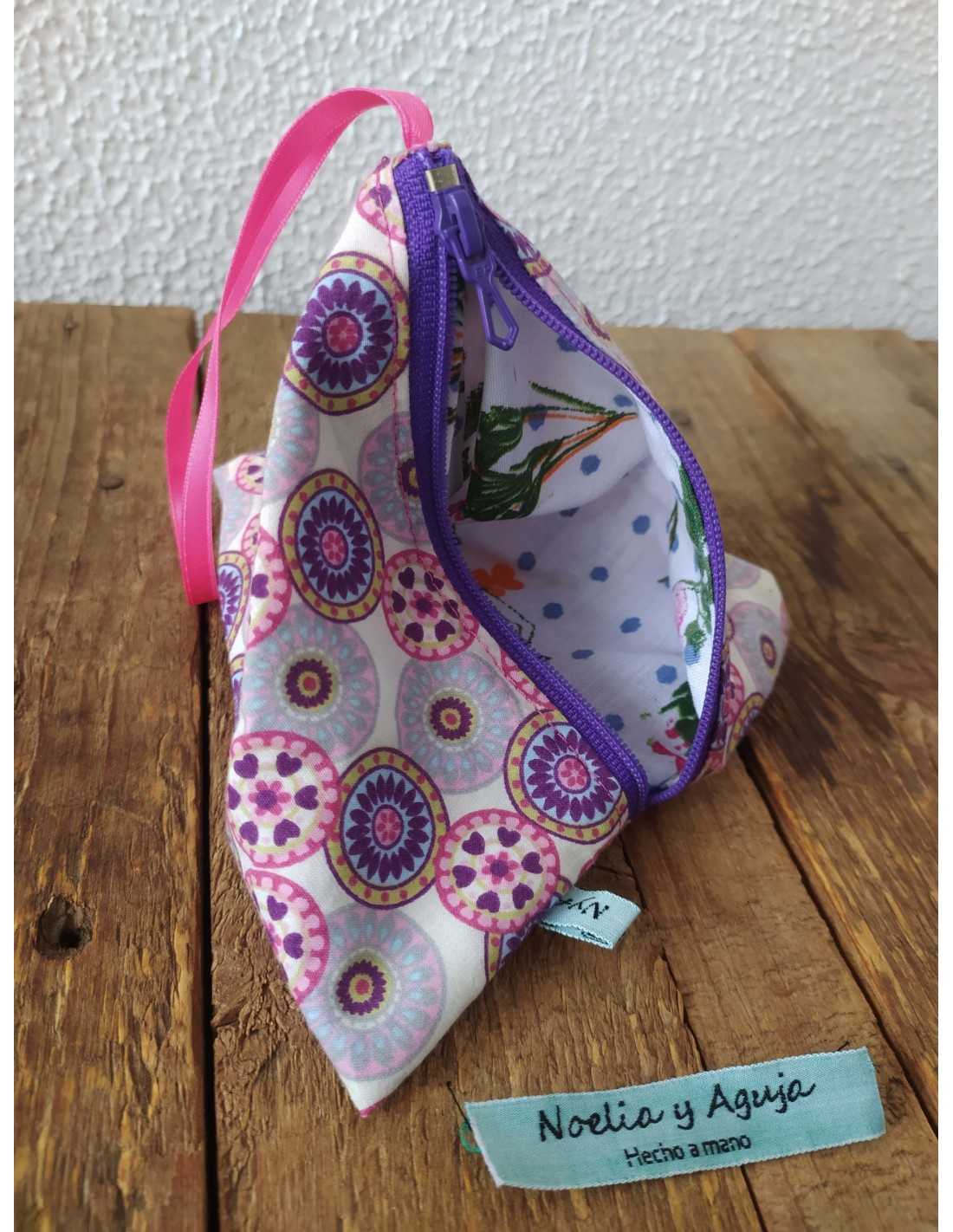 Monedero, joyero, bolsa para maquillaje, …, con forma piramidal. Puedes darle el uso que quieras.