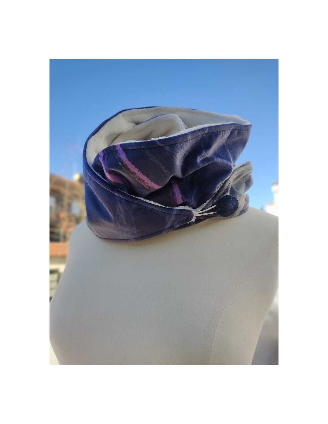 Cálido y supersuave cuello de tela aterciopelada en el exterior y tela de coralina en el interior con tono beig y con cierre de botón.