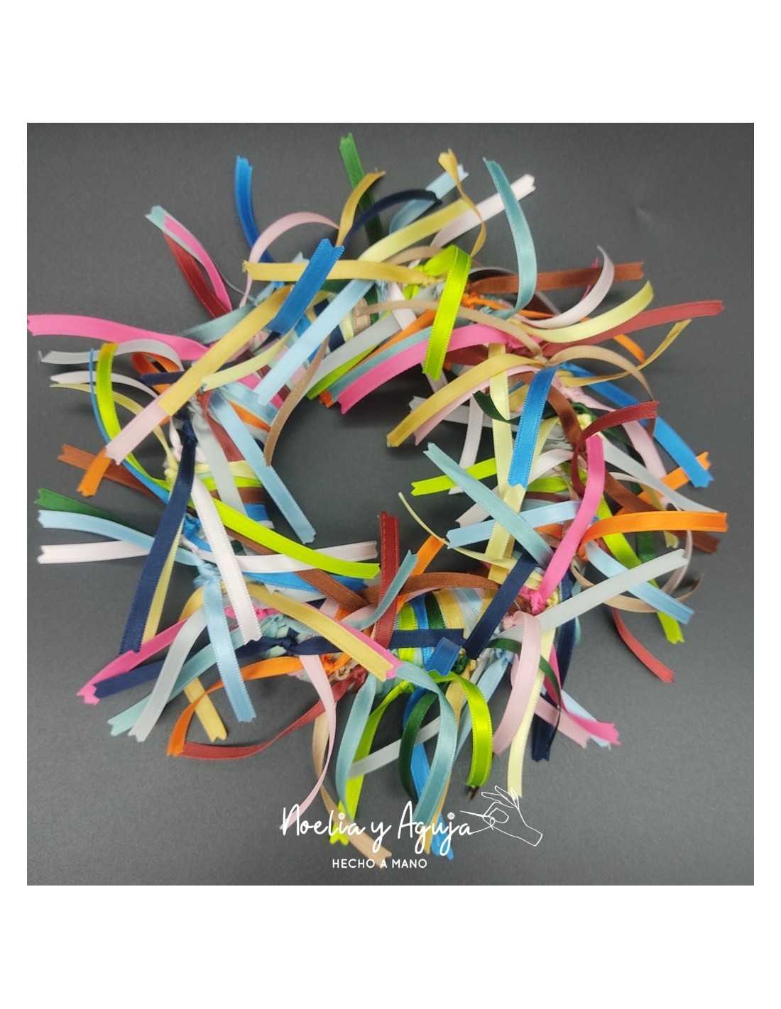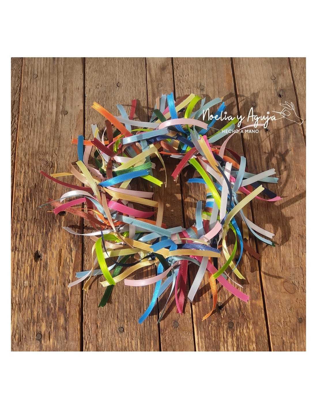 Corona de cintas de colores.Medida aprox. del aro 16 cm de diámetro.
